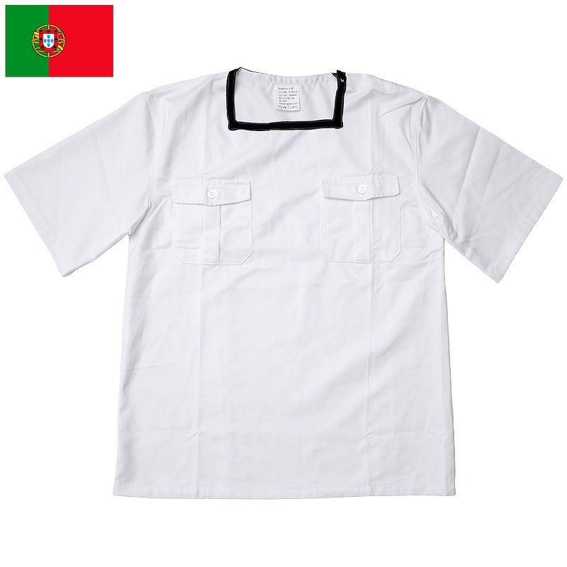 5. 1点ならメール便可 ポルトガル軍 セーラー 半袖シャツ ホワイト デッドストック JT050NN