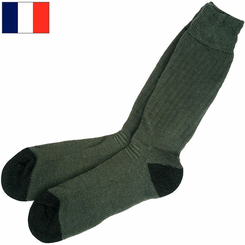 3. 1点ならメール便可 フランス軍 ウインターソックス オリーブ デッドストック FE048NN 靴下 グリーン 冬 厚手 保温 防寒 実物ミリタリー 軍モノ 軍物 未使用品