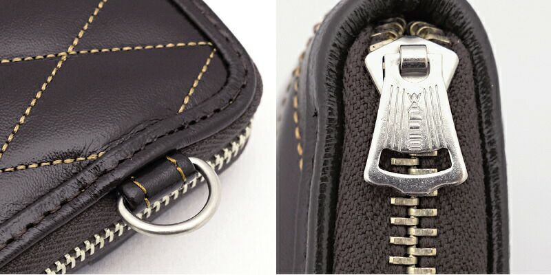 5. TOYSMcCOY トイズマッコイ #TMA2419 レザー キルティング ロングウォレット長財布 本革 馬革 ホースハイド ラウンドファスナー ステッチ ブラック ブラウン