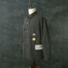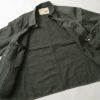 9オンスのブラックコバート生地を使用したワークコート。シンプルながらガチャポケ仕様など、ヴィンテージのディテールが備わった第二次世界大戦後のストアブランド系のワークコートとなっている。台襟が省略される前のモデルで、右胸はフラップポケット、左胸は3in1ポケット仕様。大型の腰ポケットは当て布付きで、内ポケットも右胸に装備している。肩や脇、袖ぐりなどは3本針巻縫いで頑丈な作り。