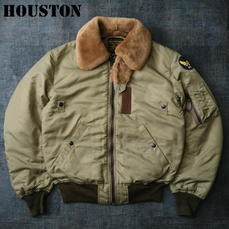 6. HOUSTON ヒューストン #5001C B-15B フライトジャケット B15B ムートン襟付き メンズ ミリタリージャケットブルゾン 定番 防風ナイロンジャケット中綿アウター 冬秋春