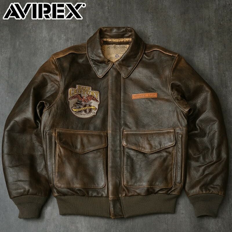 AVIREX アビレックス #7835950007 50th Anniversary A-2 ブルゾン A2 レザー フライトジャケット メンズ 男性 革 本革 皮 アウター ミリタリー カジュアル アメカジ ワッペン パッチ ユーズド加工 ヴィンテージ風 春 秋 冬