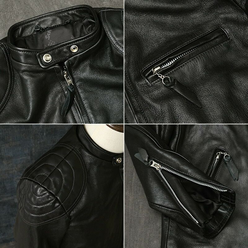 6. Schott ショット #7825150003 パデット シングルライダースジャケット メンズ 男性 黒 ブラック ゴート レザージャケット ヤギ革 本革 山羊 バイカー バイク アウター