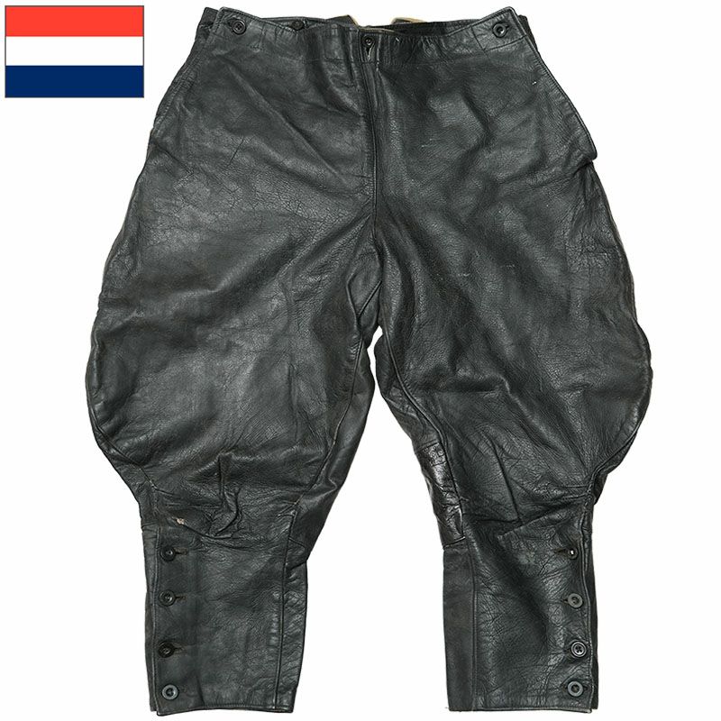 オランダ軍 レザー モーターサイクルパンツ ブラック USED #タイプ1 KL ジョッパーズ ライディング ライダース 本革 本皮 トラウザーズ ズボン ボトムス 黒 実物ミリタリー 軍物 軍モノ レア 希少