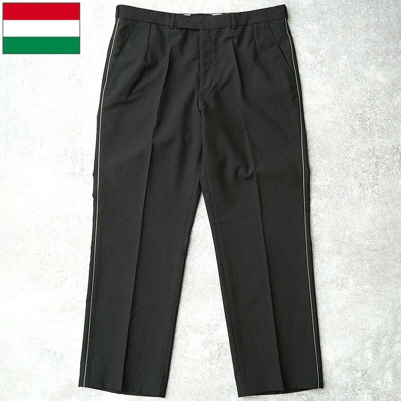 ハンガリー軍 サイドライン ドレスパンツ ブラック デッドストック PP484NN ユニフォーム 制服 正装 トラウザーズ スラックス ズボン ボトムス パイピングライン ライトウェイト 薄手 ウールポリエステル 夏 黒 男性 メンズ 実物ミリタリー 軍モノ 軍物 未使用品