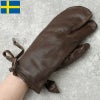 メール便可 スウェーデン軍 レザー シューティング ミトングローブ ブラウン デッドストック GM026NN SWD トリガー 3本指 手袋 本革 茶色 個人装備 軍装 ウィンター 冬 ヴィンテージ カジュアル 実物ミリタリー 軍モノ 軍物 未使用品