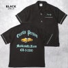 HOUSTON春夏定番のボウリングシャツ。生地には適度な厚みのレーヨン100%を使用し、暑い季節にぴったりなさらっとした着心地。こだわりのボウリングピンボタンもオリジナルで作成。刺繍には今までありそうでなかった、ブラックレター調のフォントがルード感漂う車柄。