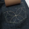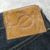 琉球藍モデルと対を成す、ハワイ藍を使用した砂糖黍デニム「Lot.401」。 シルエットは1947モデル(Lot No. SC41947)に近いレギュラーストレート。 生地は青みが強く、ムラ感も特徴。 ラベルはハワイで神の遣いとされる亀を焼印したヘアオンハイドで、バックポケットには手刺しで刺繍された刺し子のステッチが入る。