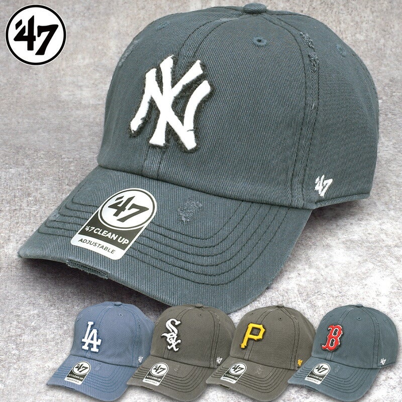 47 フォーティーセブン クリーンナップ MLB キャップ WELL-WORN 帽子 野球帽 CAP 球団ロゴ メンズ 男性 レディース 女性 ユニセックス カジュアル メジャーリーグ ダメージ加工 ヴィンテージ風 パイレーツ ヤンキース ドジャース ホワイトソックス レッドソックス