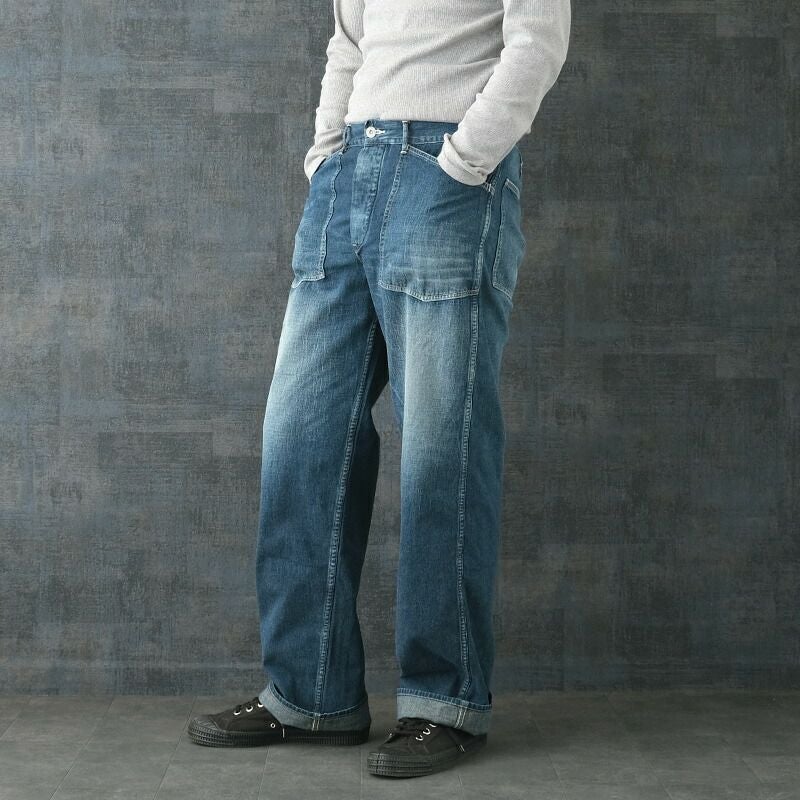 デニムパンツ メンズ 男性 ズボン ミリタリー ボトムス ジーパン ジーンズ カジュアル アメカジ エイジング ヴィンテージ風 ボタンフライ
