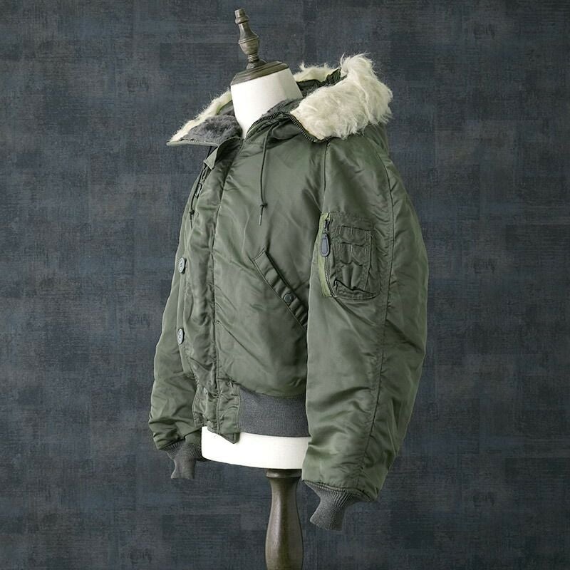 アメリカ軍 GI US AIR FORCE エアフォース 空軍 N2B ヘビーゾーン パイロット ショート丈 アウター パーカー ブルゾン 上着 中綿入り 防寒 保温 フード付き カジュアル ナイロン セージ 実物ミリタリー 軍物 軍モノ