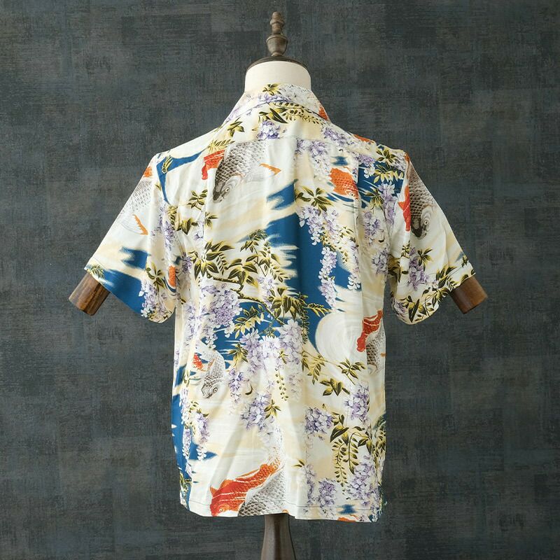 ハワイアンシャツ メンズ 男性 オープンカラーシャツ 開襟 春 夏 トップス ショートスリーブ カジュアル アメカジ ヴィンテージ風 和柄 日本