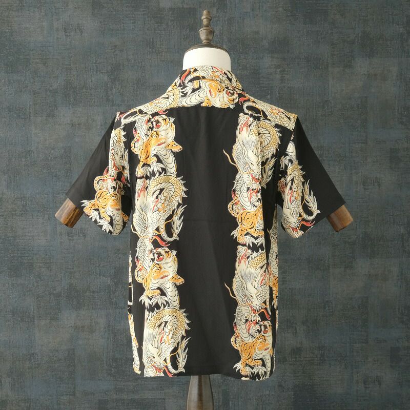 メンズ 男性 トップス オープンカラーシャツ ハワイアンシャツ ショートスリーブ カジュアル 和柄 春 夏 DRAGON TIGER 海