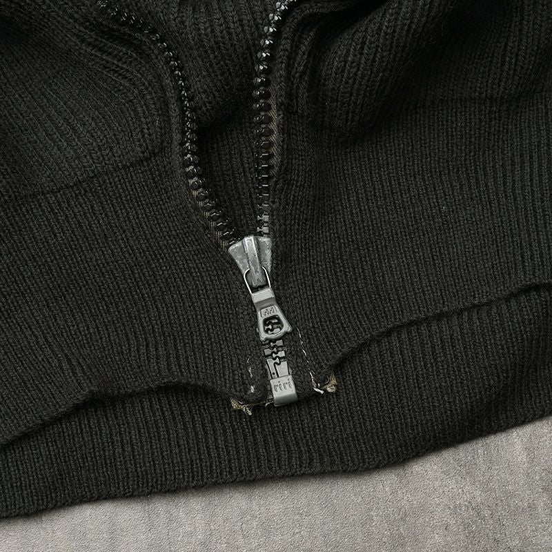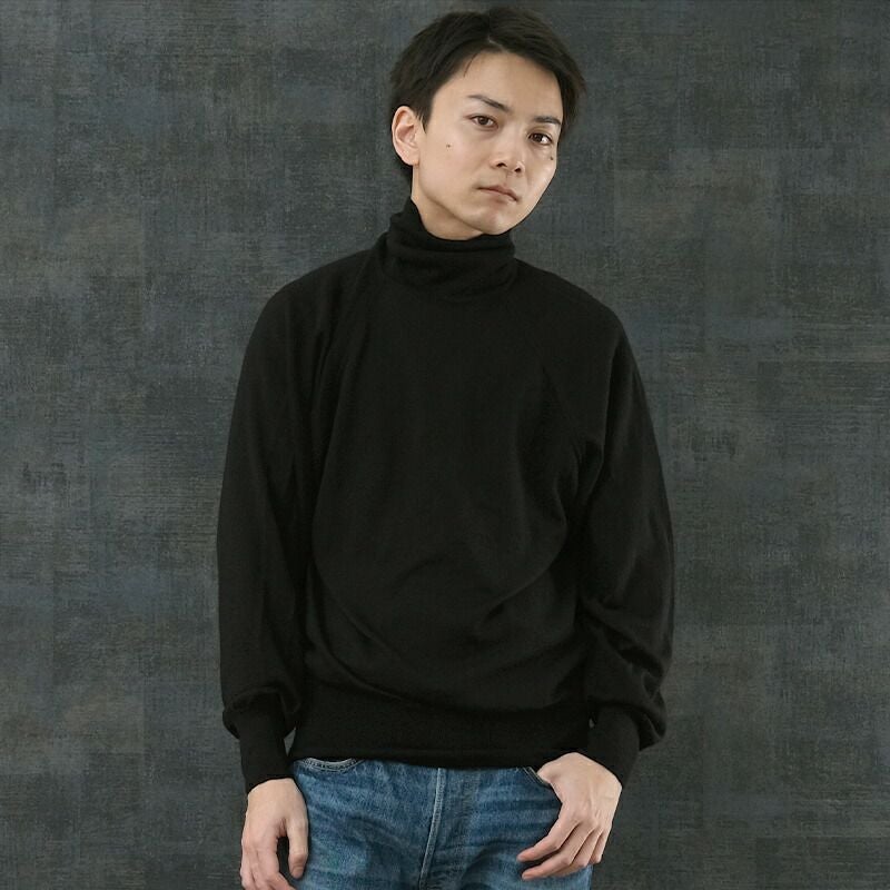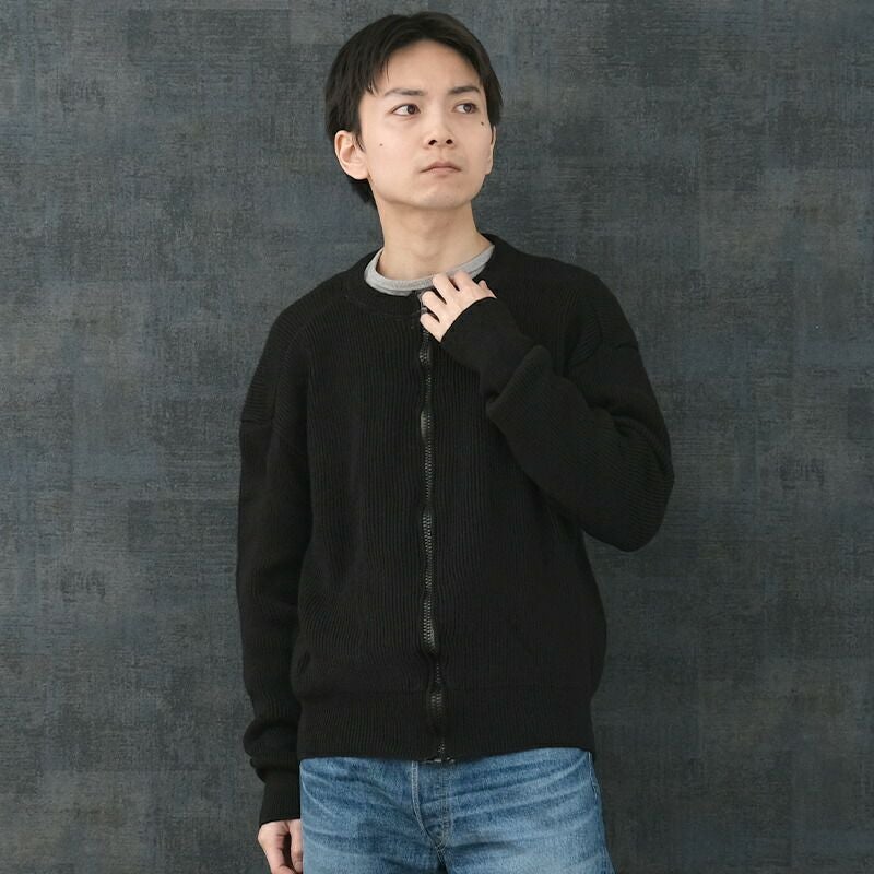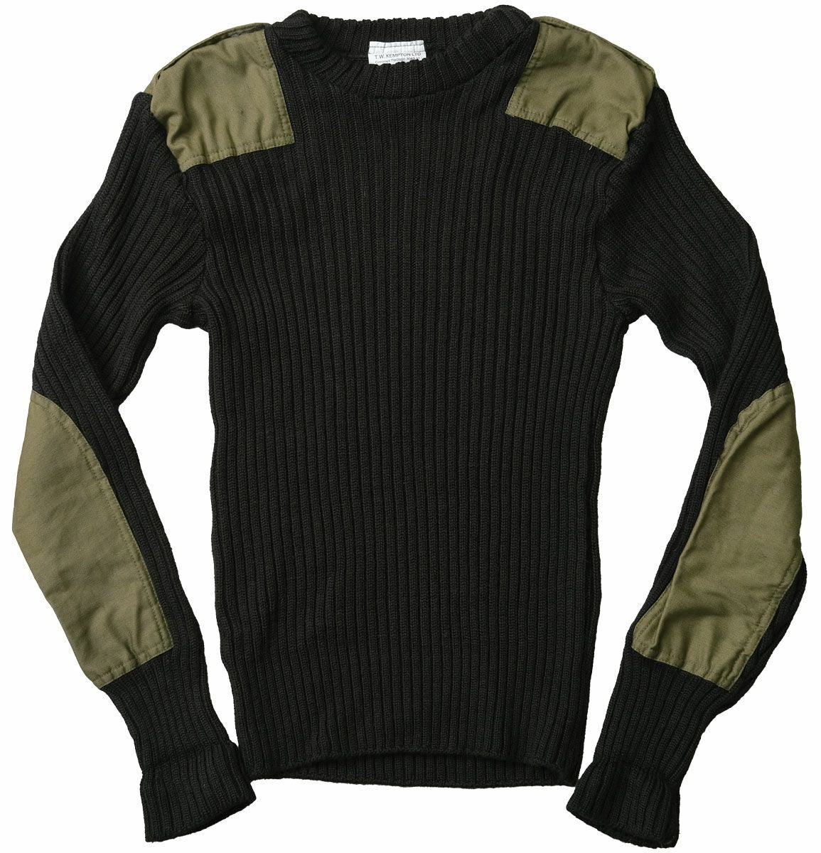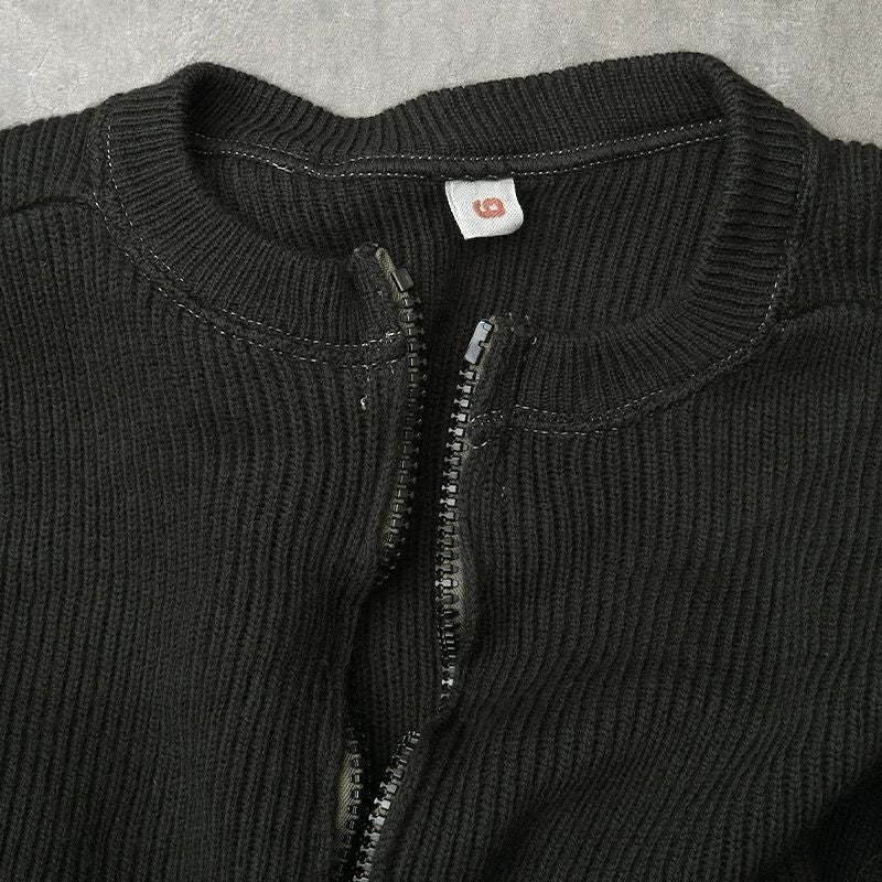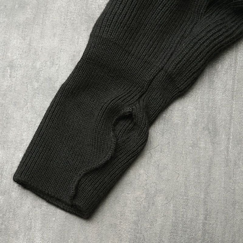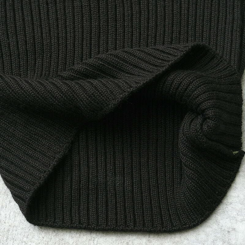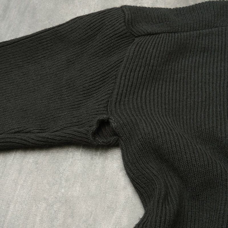 Kempton社製 実物 ミリタリー ニット トップス ブラック リブ 伸縮 ウール 防寒 春 秋 冬