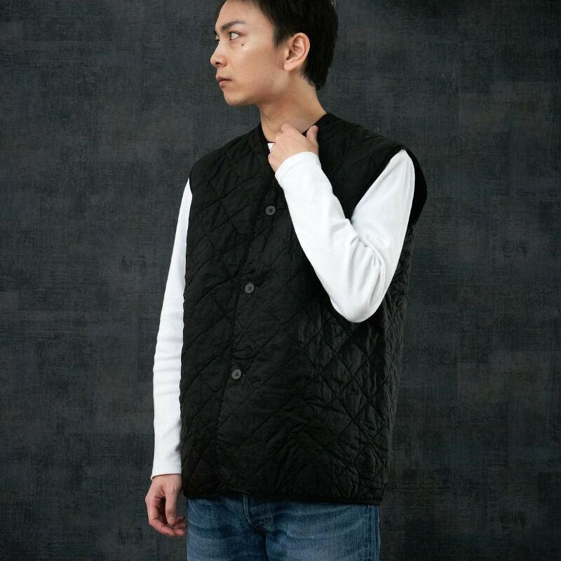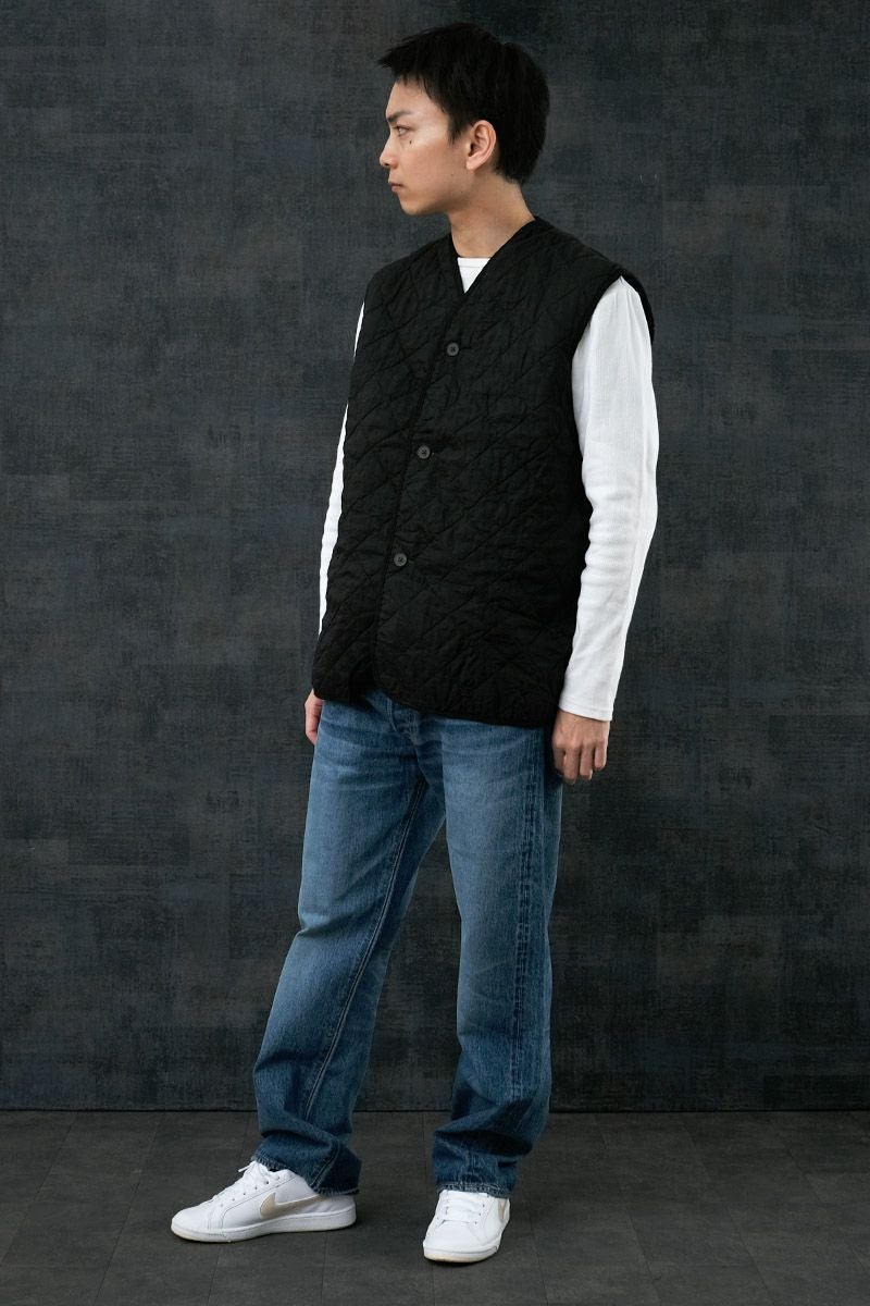 イギリス軍 キルティング ライナーベスト 黒染め USED JV037UD