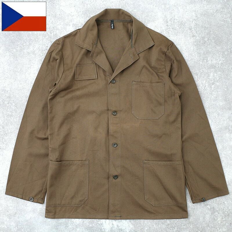 チェコ軍 メカニック ワークジャケット 3ポケット HBT ブラウン デッドストック JJ408NN