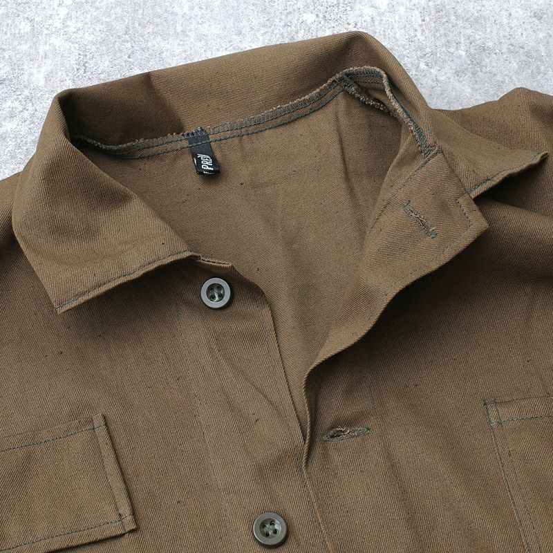 ワークウェア ワーカー シャツジャケット 羽織り 3PK コットン ヘリンボーンツイル 薄手 カジュアル 茶色 実物ミリタリー 軍物 軍モノ 未使用品