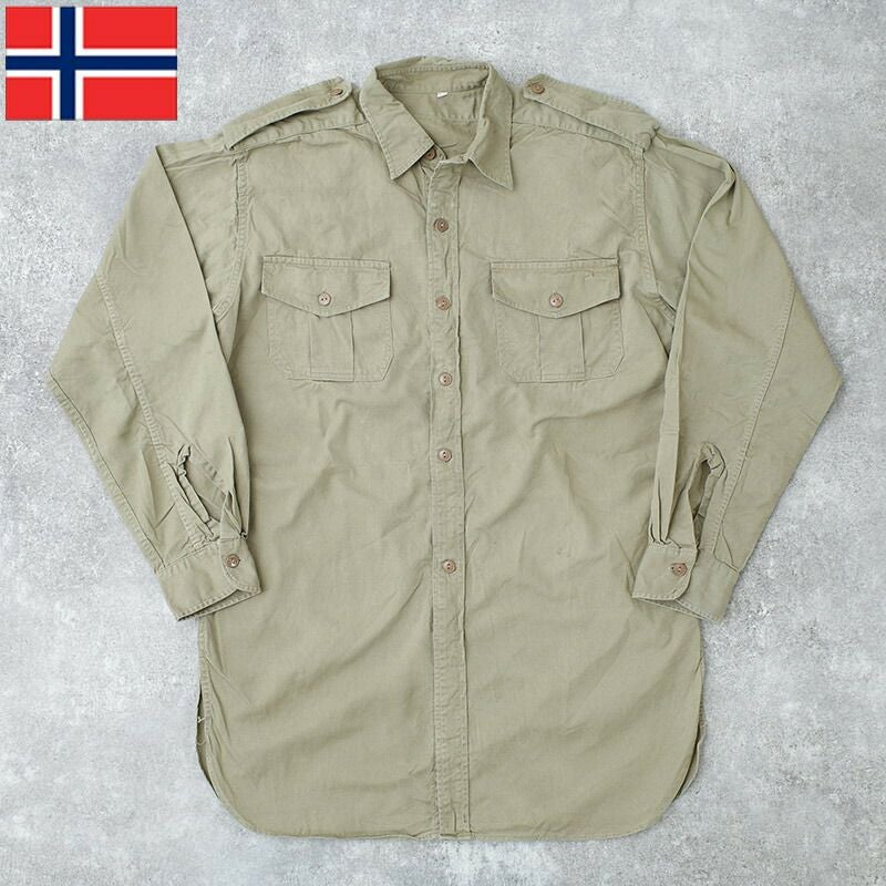ノルウェー軍 チノシャツ 長袖 カーキ USED JS238UN