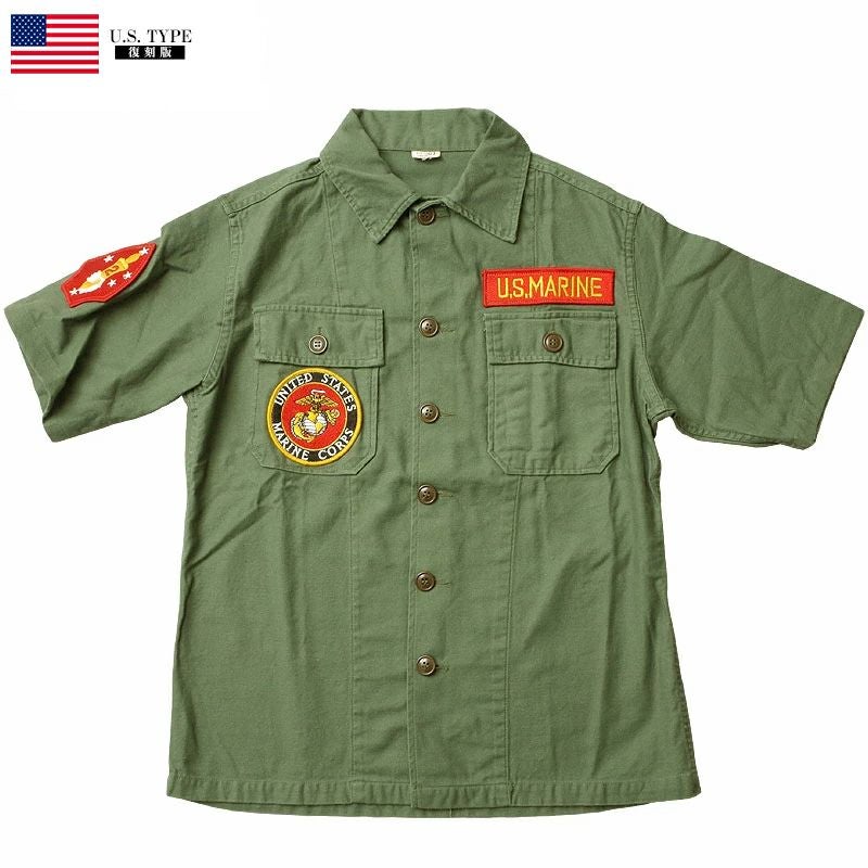 OG107 パッチ ワッペン付き メンズ アーミーシャツ カジュアル ワークシャツ ハーフスリーブ ショートスリーブ アメカジ レプリカ 復刻
