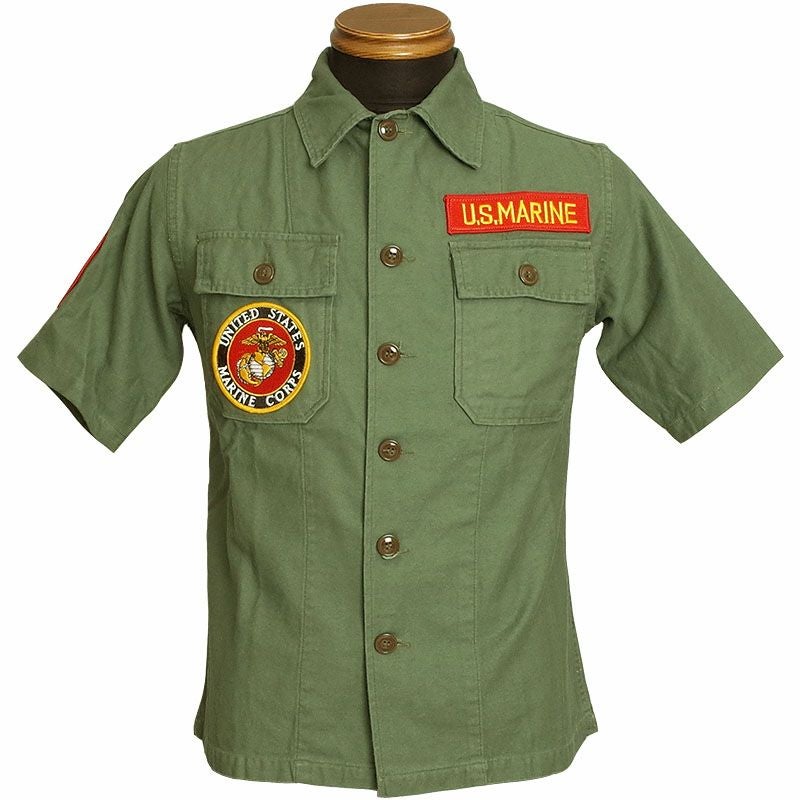 米軍タイプ OG-107ファティーグシャツ 半袖 『MARINE』ミリタリーシャツ #JS155YNMC