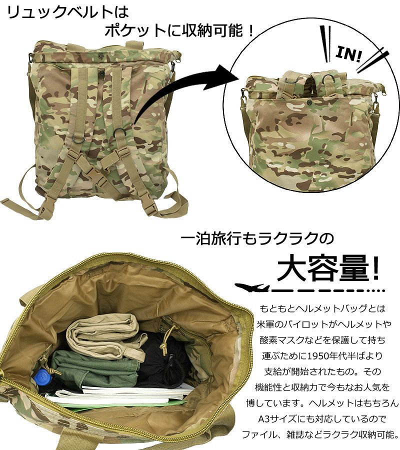 3WAY ヘルメットバッグ ミリタリーバッグ/3WAYバック BH063YN