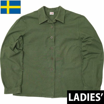 スウェーデン軍 ユーティリティシャツ 長袖 グリーン レディース USED SWD ファティーグシャツ ワークシャツ ロングスリーブ 羽織り カジュアル 緑 女性 実物ミリタリー 軍物 軍モノのレビューを書く
