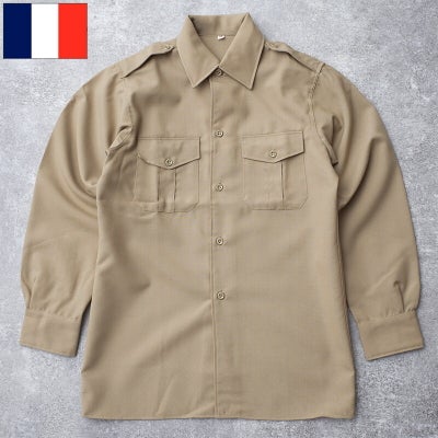 フランス軍 60s オフィサーシャツ カーキ 長袖 デッドストック JS240NN 仏軍 フレンチアーミー ロングスリーブ ワーカー ドレス チノ ベージュ タン サンド 男性 メンズ 小さいサイズ 女性 レディース 実物ミリタリー 軍物 軍モノ ビンテージ 1960年代 未使用品のレビューを書く