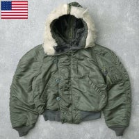 米軍 N-2B フライトジャケット USED アメリカ軍 GI US AIR FORCE エアフォース 空軍 N2B ヘビーゾーン パイロット ショート丈 アウター パーカー ブルゾン 上着 中綿入り 防寒 保温 フード付き カジュアル ナイロン セージ 実物ミリタリー 軍物 軍モノ